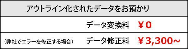 データ形式はaiもしくはPDFで、いずれの場合もアウトライン化してください。データにエラーがある場合はお客様に修正していただきます。弊社で修正も承ります。