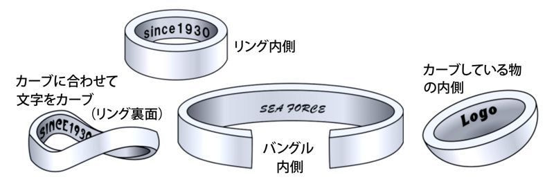 フォントリストに無い書体や、オリジナルロゴマークを入れたい場合、お客様にデータを添付していただいてレーザー刻印することが可能です。