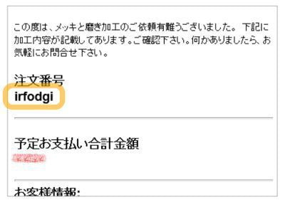 フォーム送信後、「注文番号××」というランダムな文字列が記載された自動返信メールがきます。